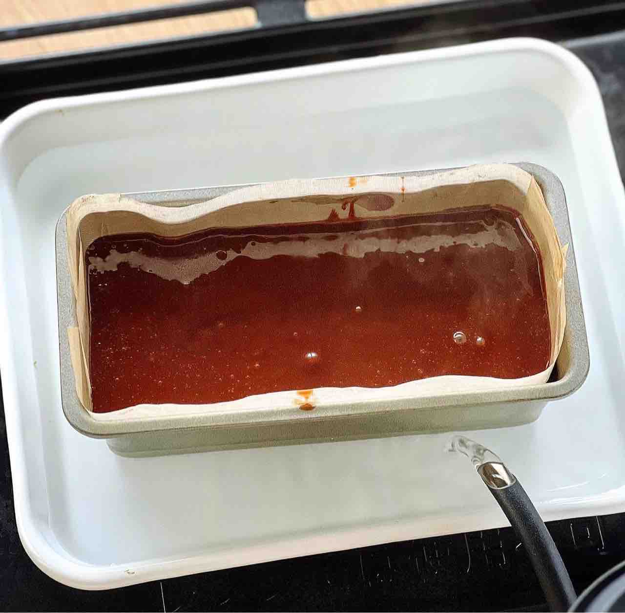 3. 型に注ぎ、熱湯を注いだバット(天板)に乗せ、予熱したオーブンで18~20分湯煎焼きする。(焼き上がり→中はフルフルの状態でOK!)