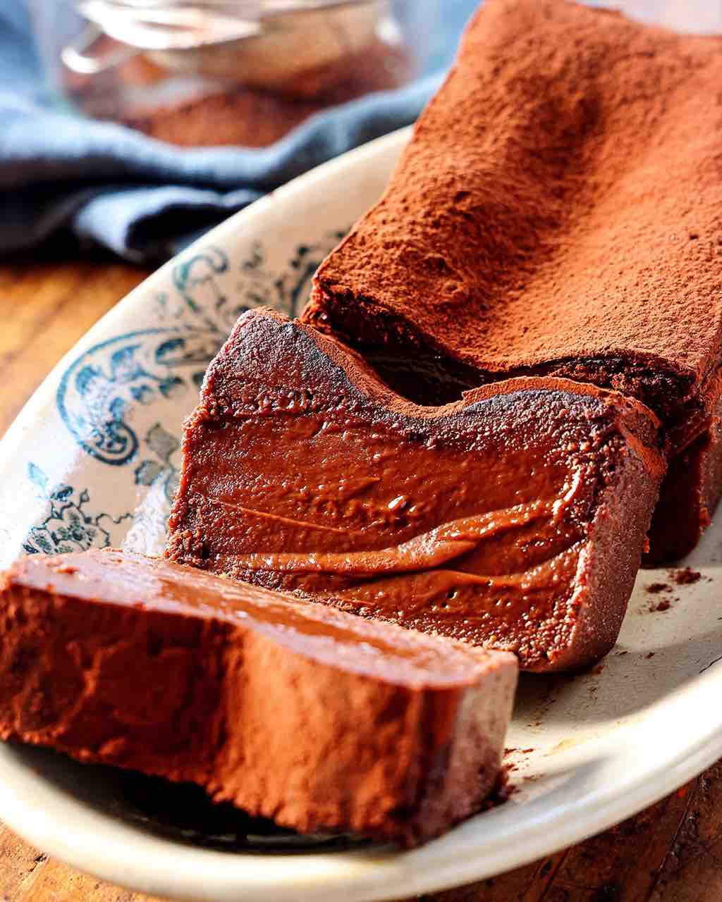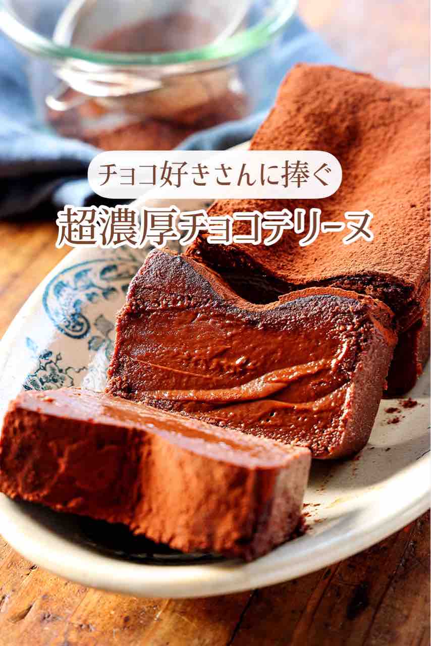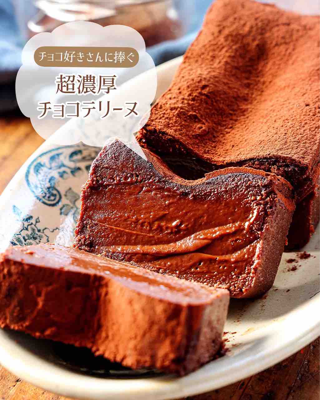 ♦︎チョコテリーヌをしばらく常温に置き、温めたナイフで切ると断面がとろけて写真のようになります♩