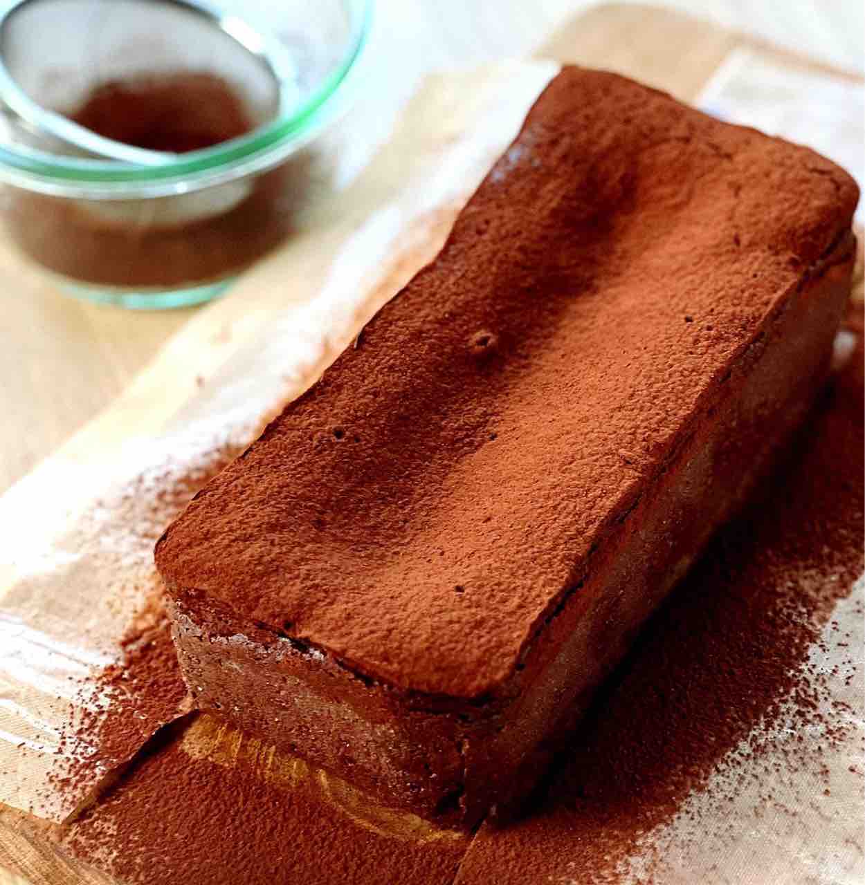4.型に入れたまま冷まし、冷蔵庫で一晩以上しっかり冷やし、仕上げにココアを振る。(しばらく常温に置き、温めたナイフで切るととろけます♩)