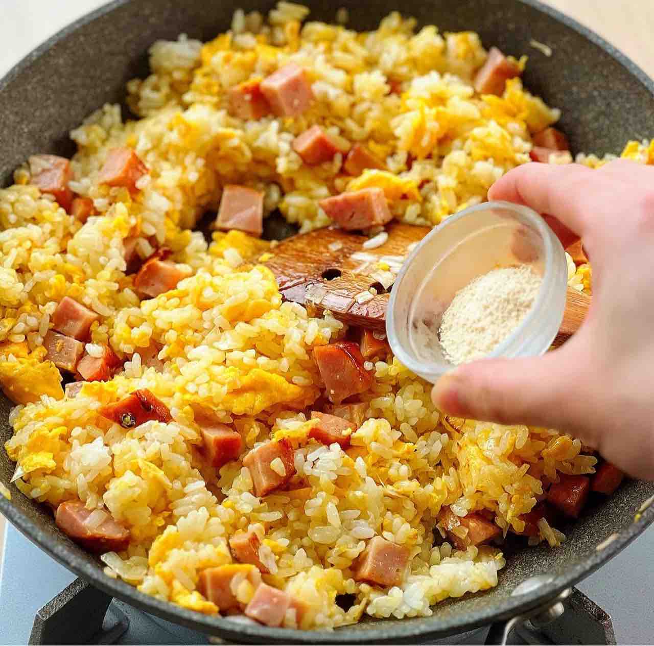 ♦︎かためのごはんを使うと、よりパラパラになりやすいです!