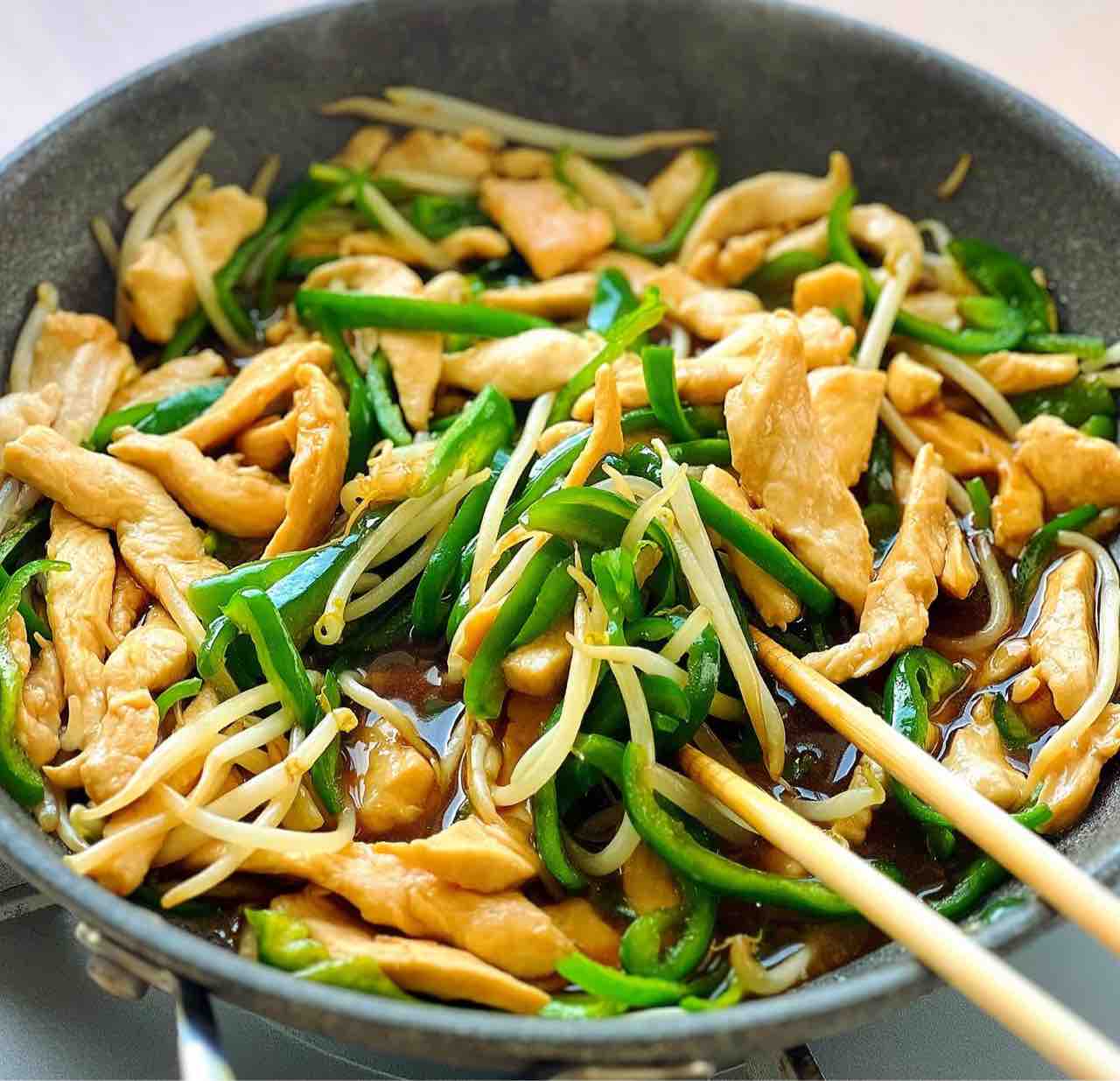 \ 鶏むねもやしのチンジャオロース /