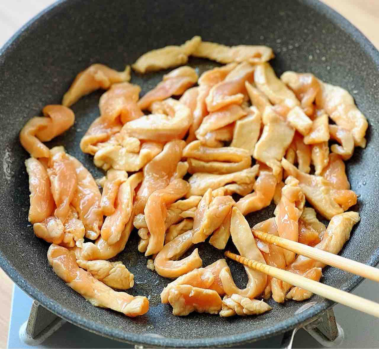 むね肉は細切り+下味を付けることで