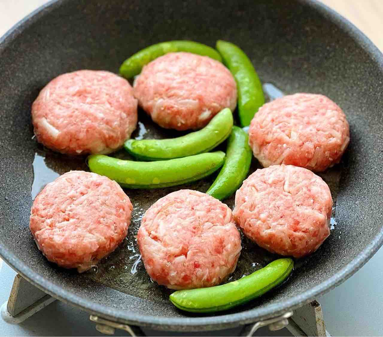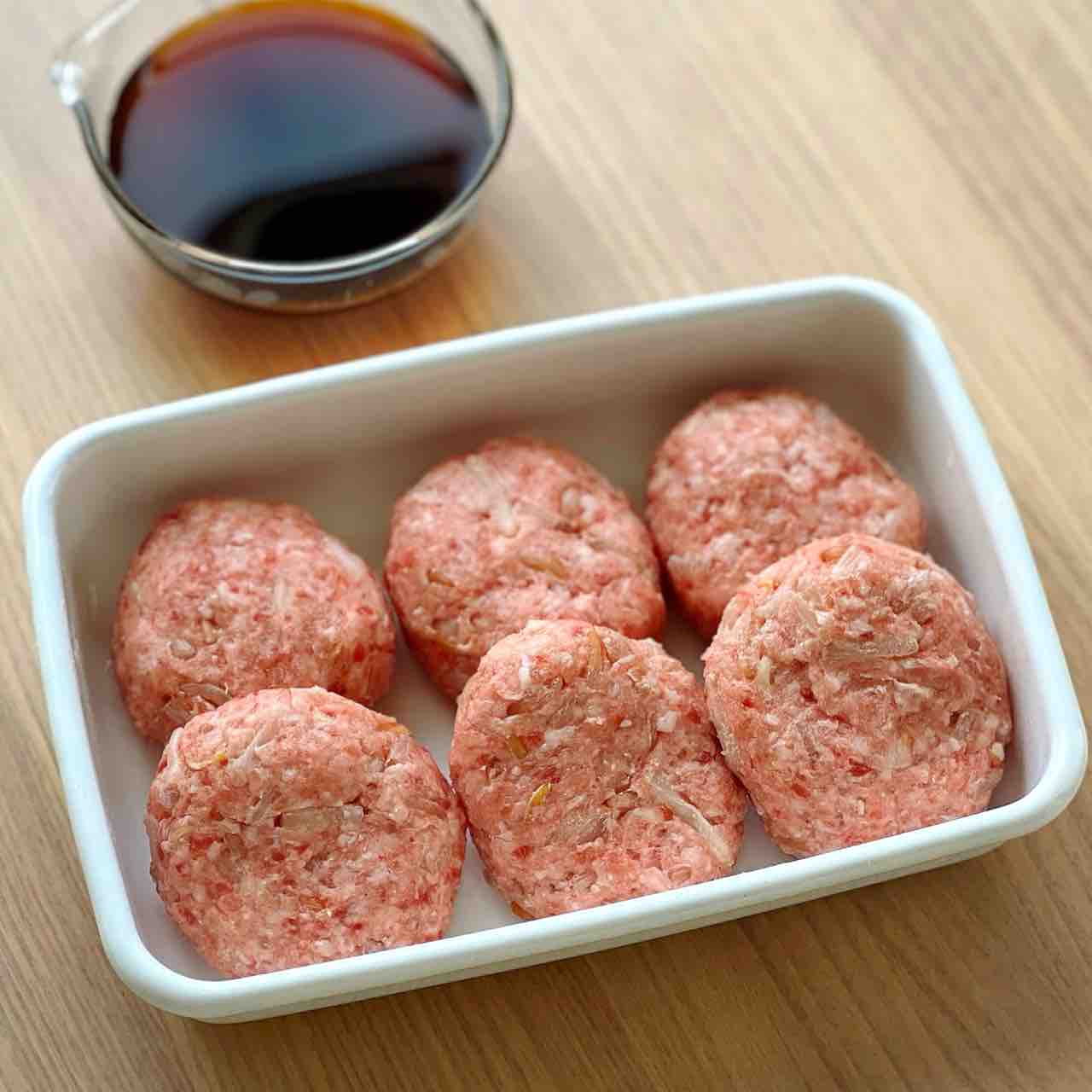 2.フライパンに油を中火で熱し、1の肉だねを焼く。焼き色が付いたら裏返し、蓋をして弱めの中火で5分蒸し焼きにする。