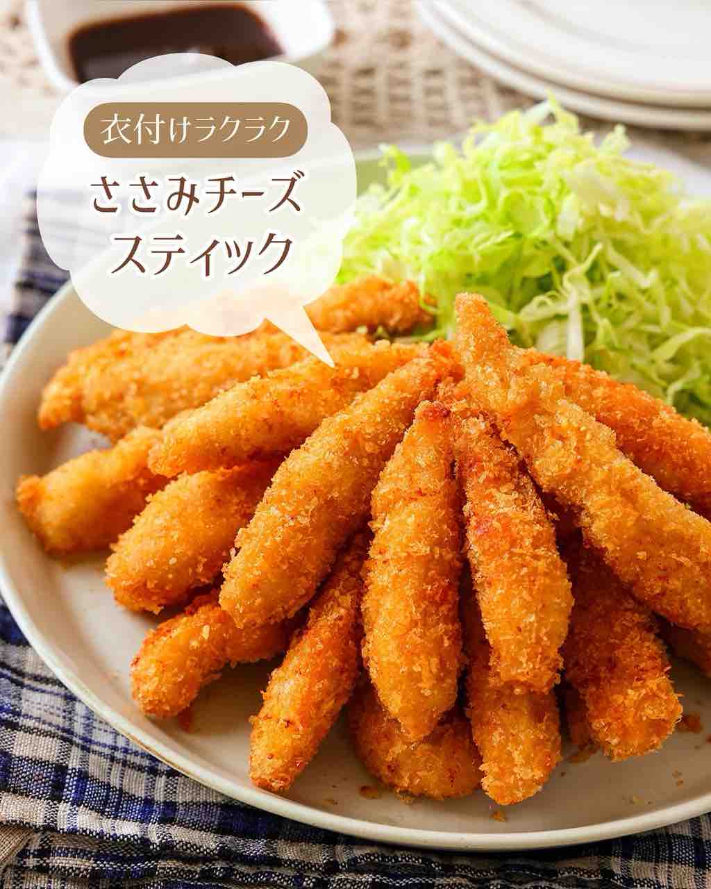 ♦︎むね肉(大1枚300g)で作る場合は同じく棒状に切って使用してください!本数(24本)を揃えていただければ、基本的に衣も同じ分量で作れます♩
