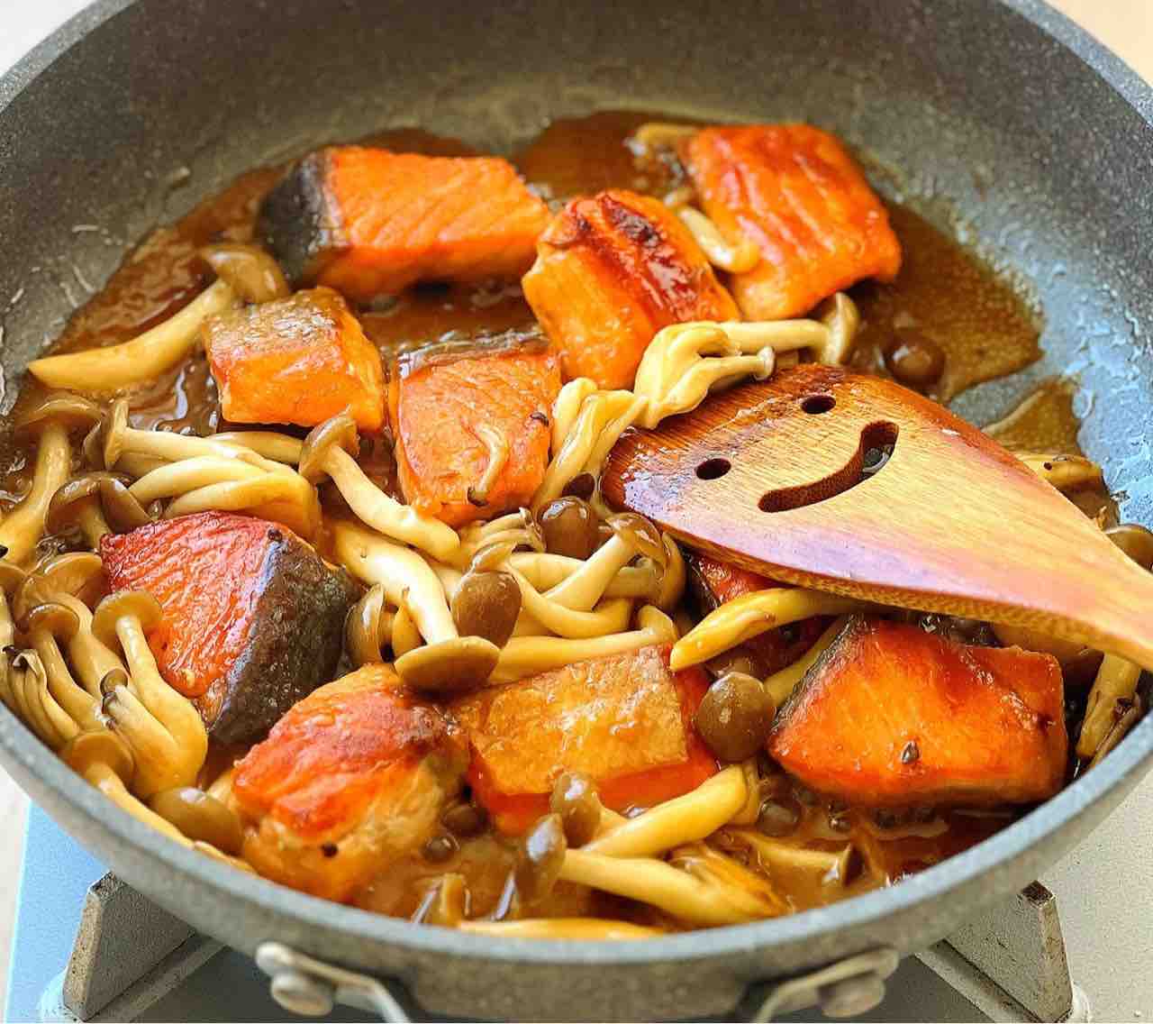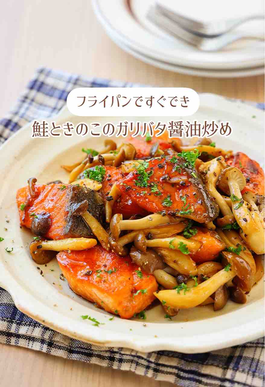 \ 鮭ときのこのガリバタ醤油炒め /