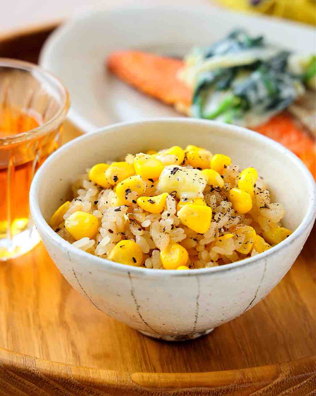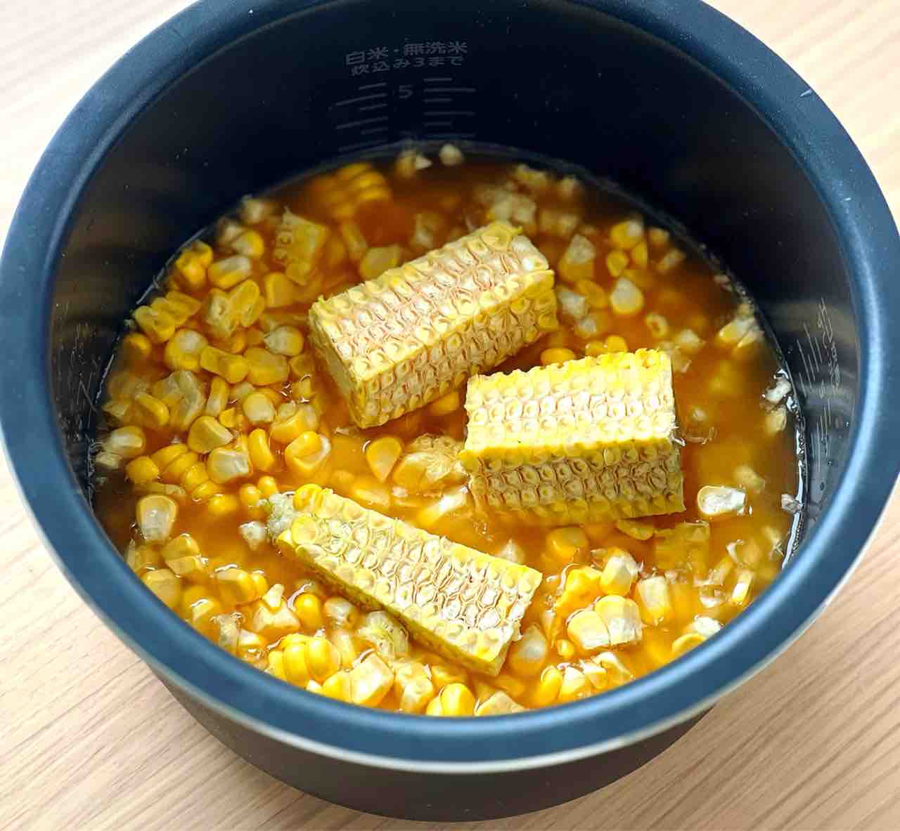♦︎とうもろこしの芯も一緒に炊き込むことで、香りや風味、甘みもアップします♩