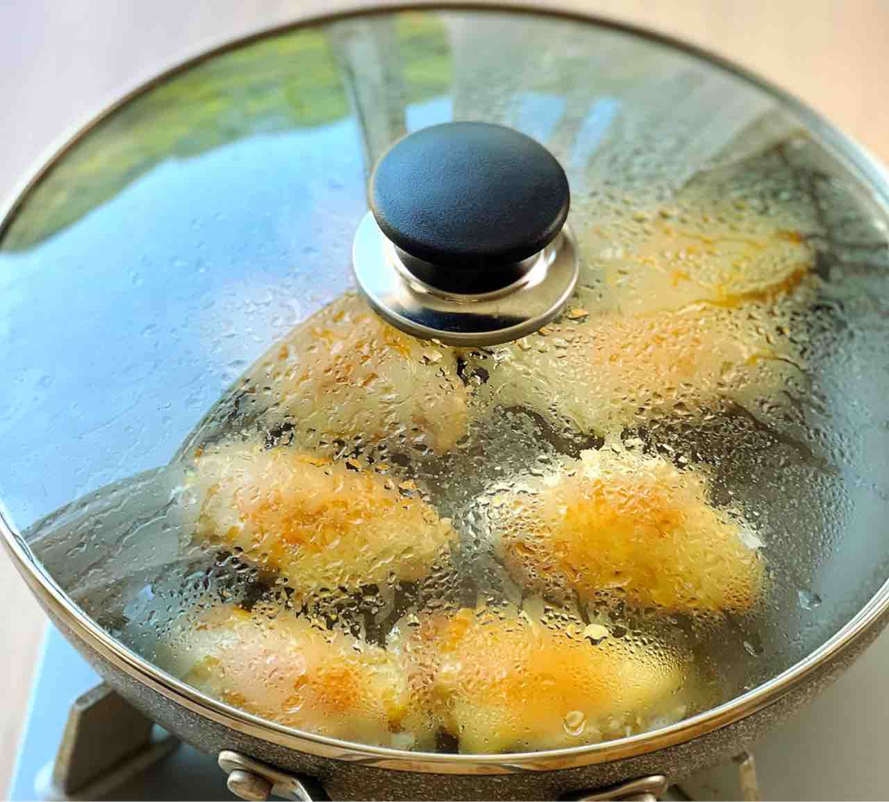 フライパンに蓋して焼くから