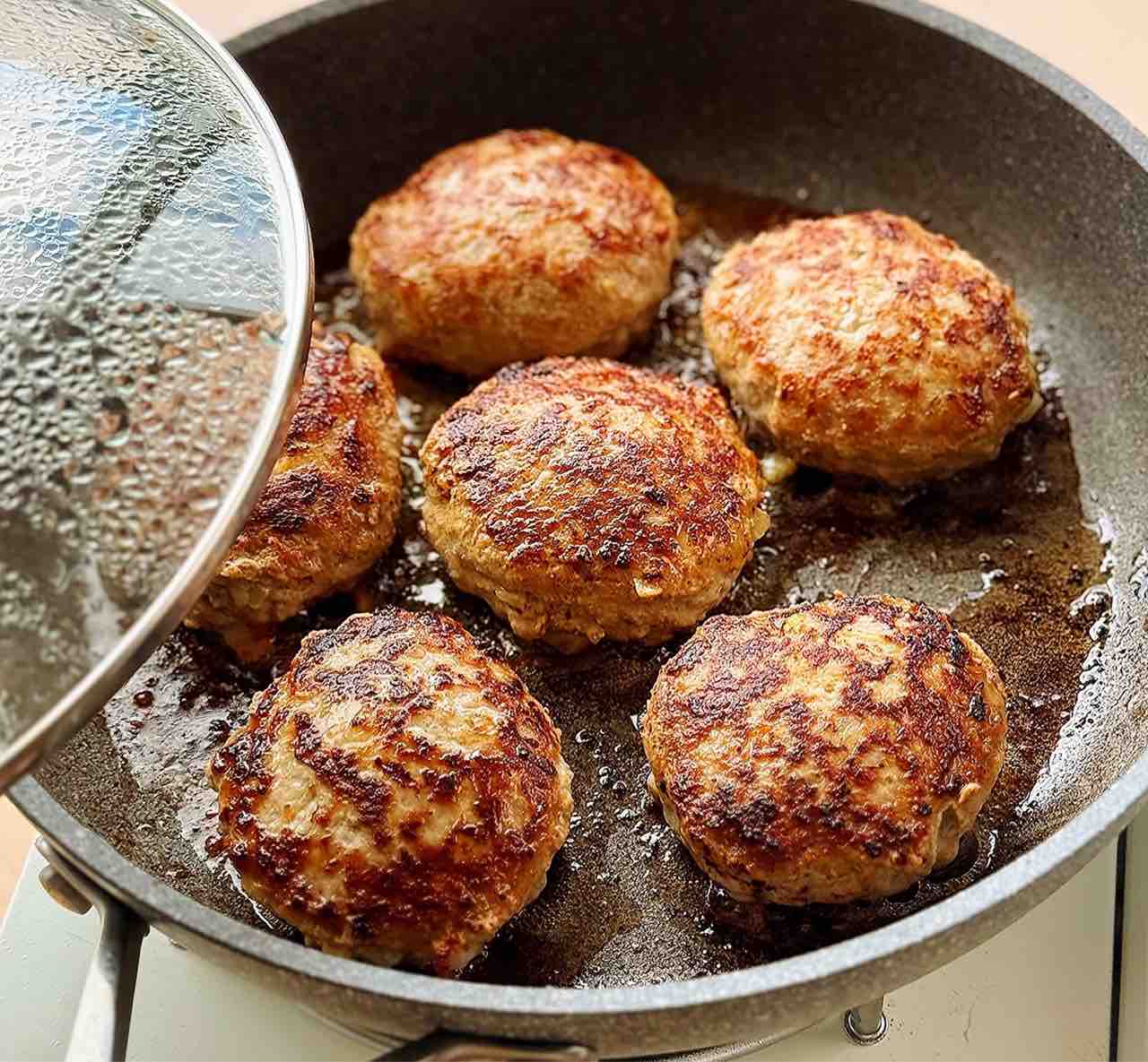 2.フライパンに油を中火で熱し、1のたねを焼く。焼き色が付いたら裏返し、蓋をして弱めの中火で3分蒸し焼きにする。