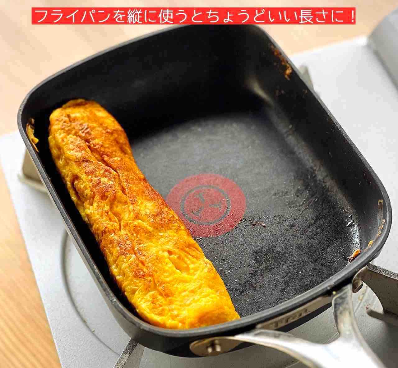 ♦︎玉子焼きはフライパンを縦に使って焼いています♩端を切り落とし、棒状に2本切り出して使うと◎