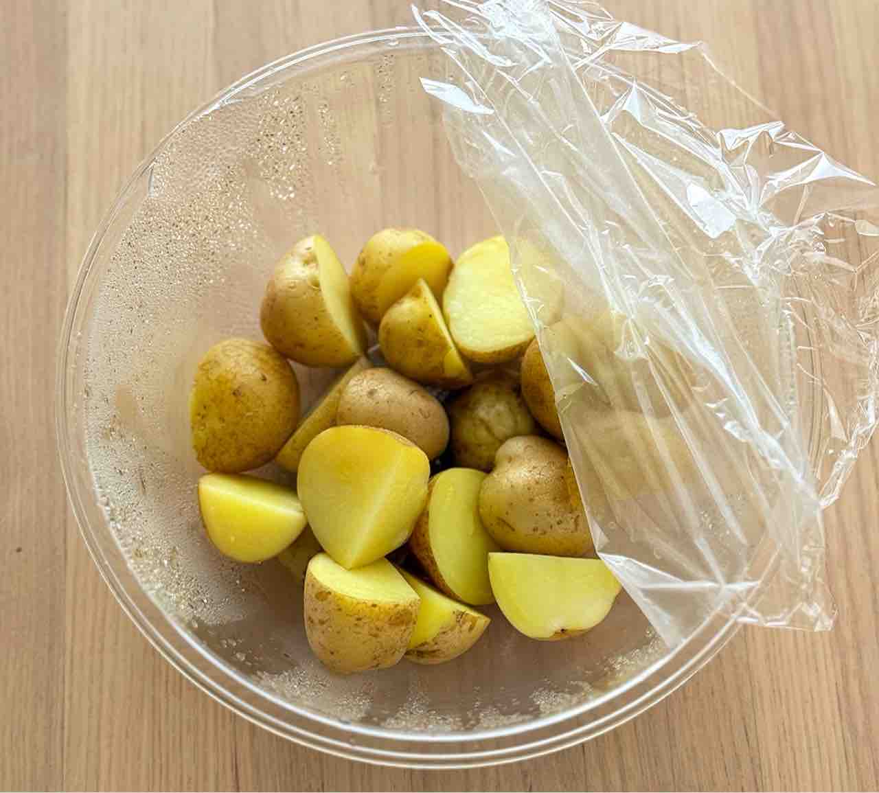 1.じゃがいもは皮ごとよく洗って4cm大に切る。