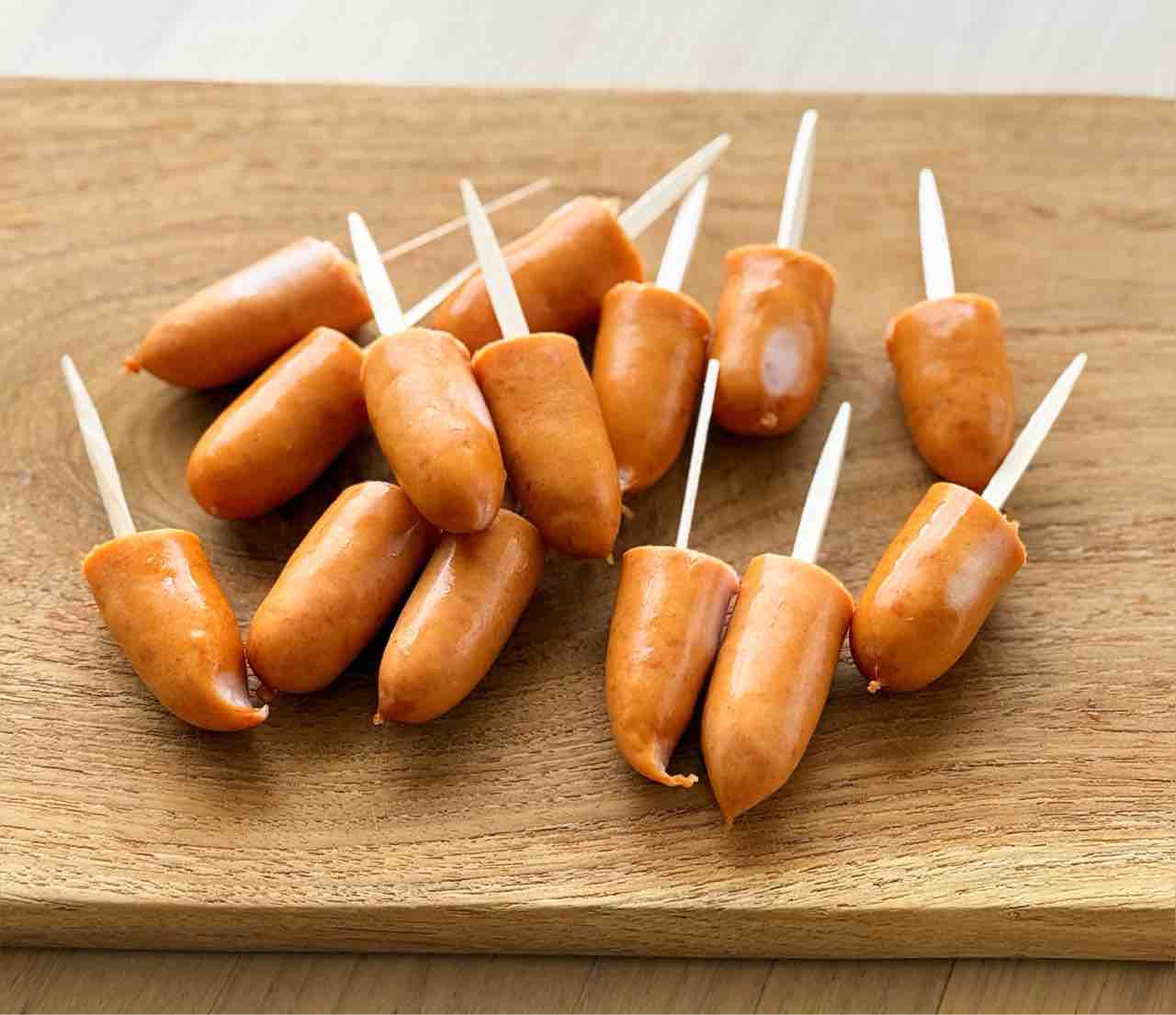 1.ソーセージは半分に切って爪楊枝を刺す。