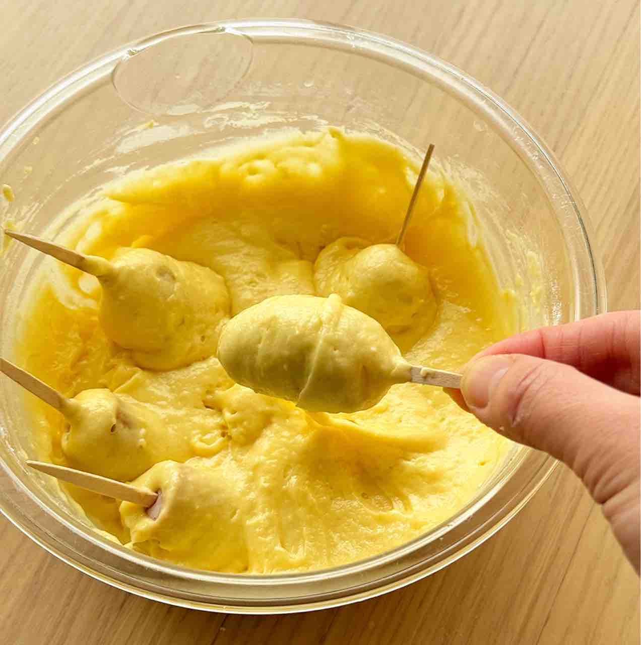 ♦︎ソーセージに生地をたっぷりからめてください♩