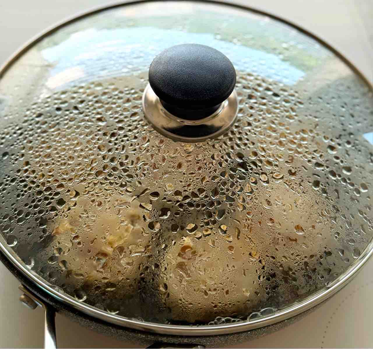 3.フライパンに油を中火で熱して2を焼く。焼き色が付いたら裏返し、蓋をして弱めの中火で4分ほど蒸し焼きにする。