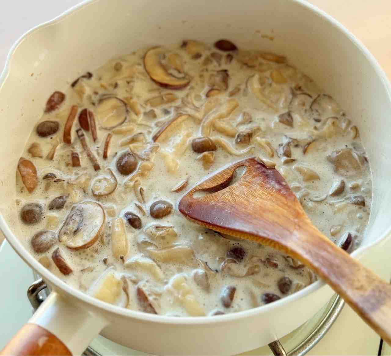 3.●を加え、混ぜながら軽くとろみが付くまで4〜5分煮込む。