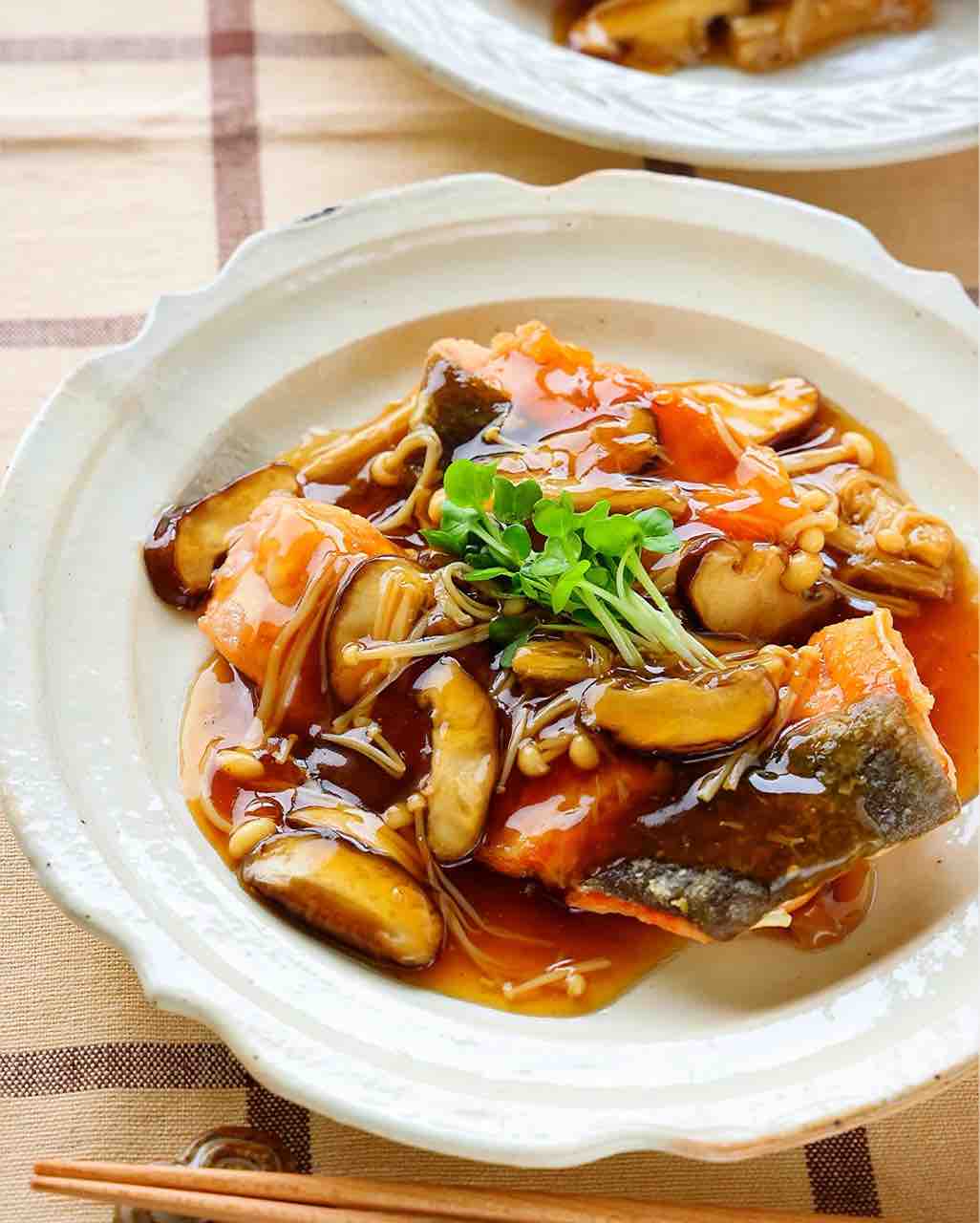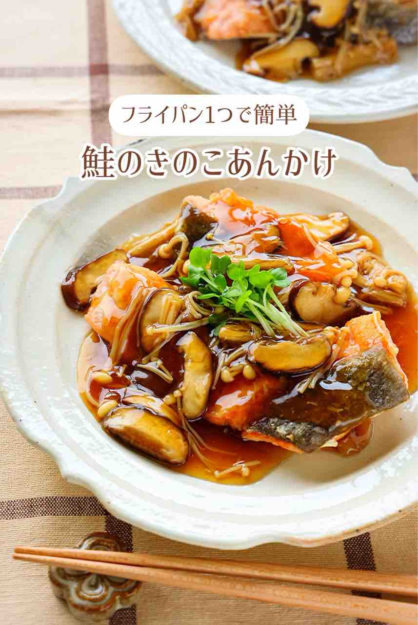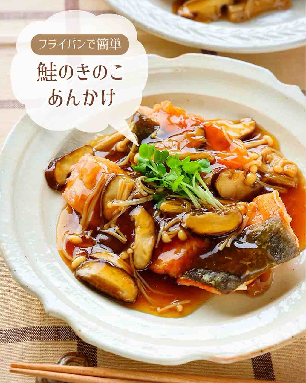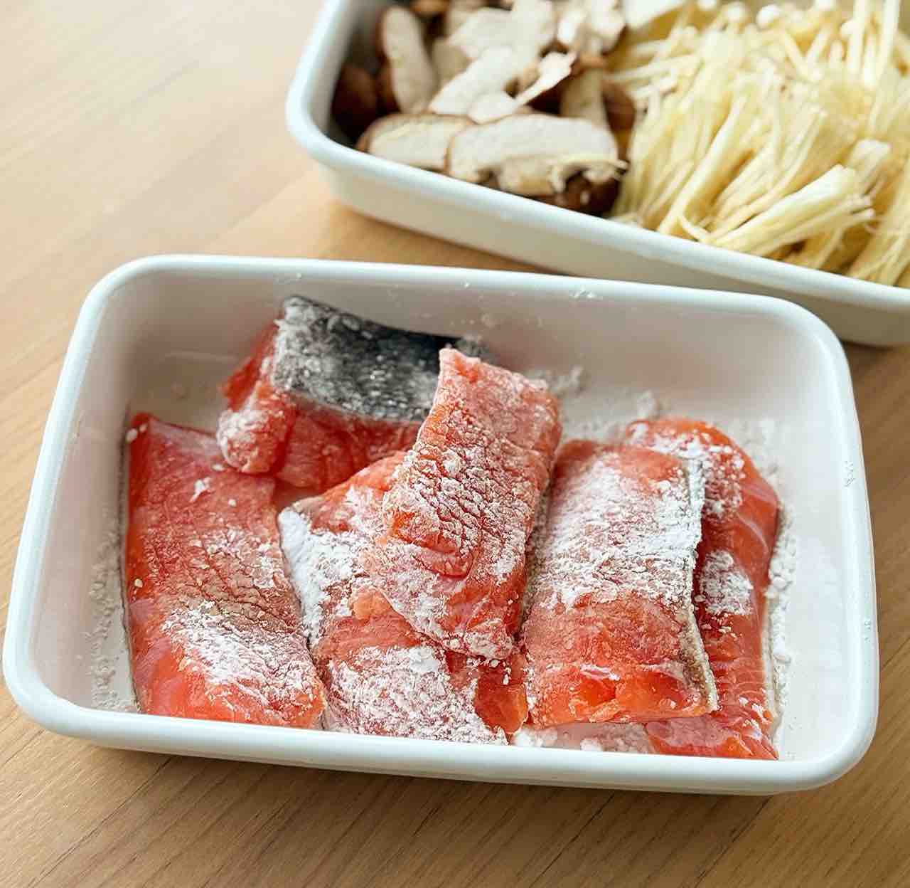 1.えのきは長さを半分にしてほぐし、しいたけは薄切りにする。鮭は食べやすい大きさに切り、塩こしょうを振って片栗粉をまぶす。