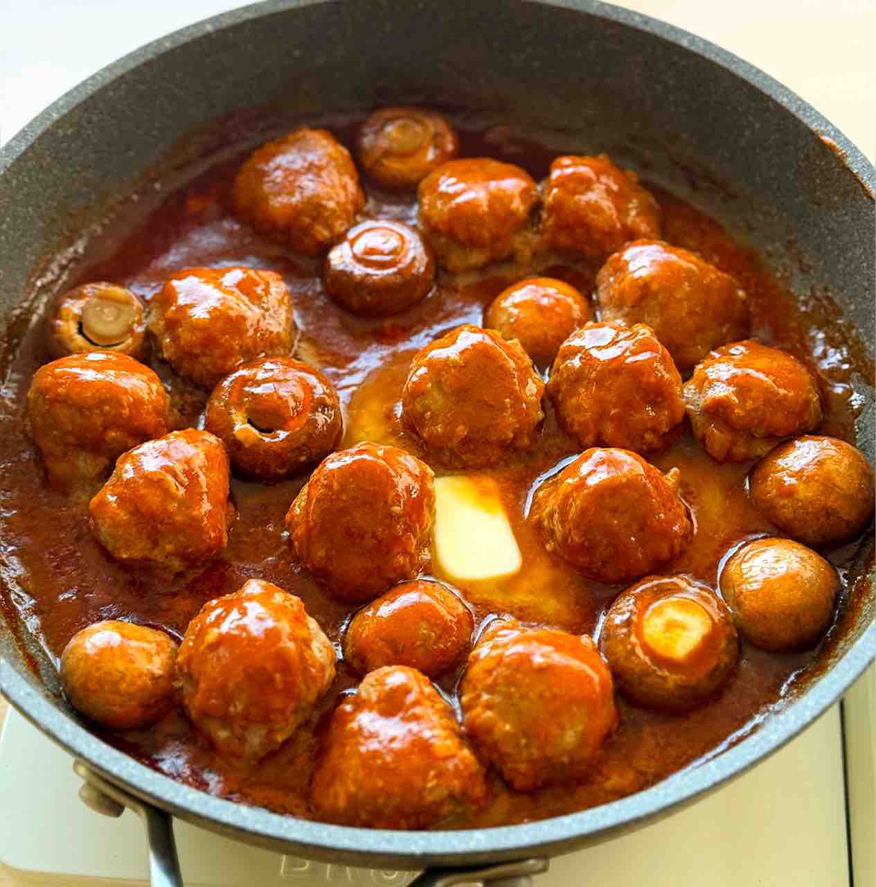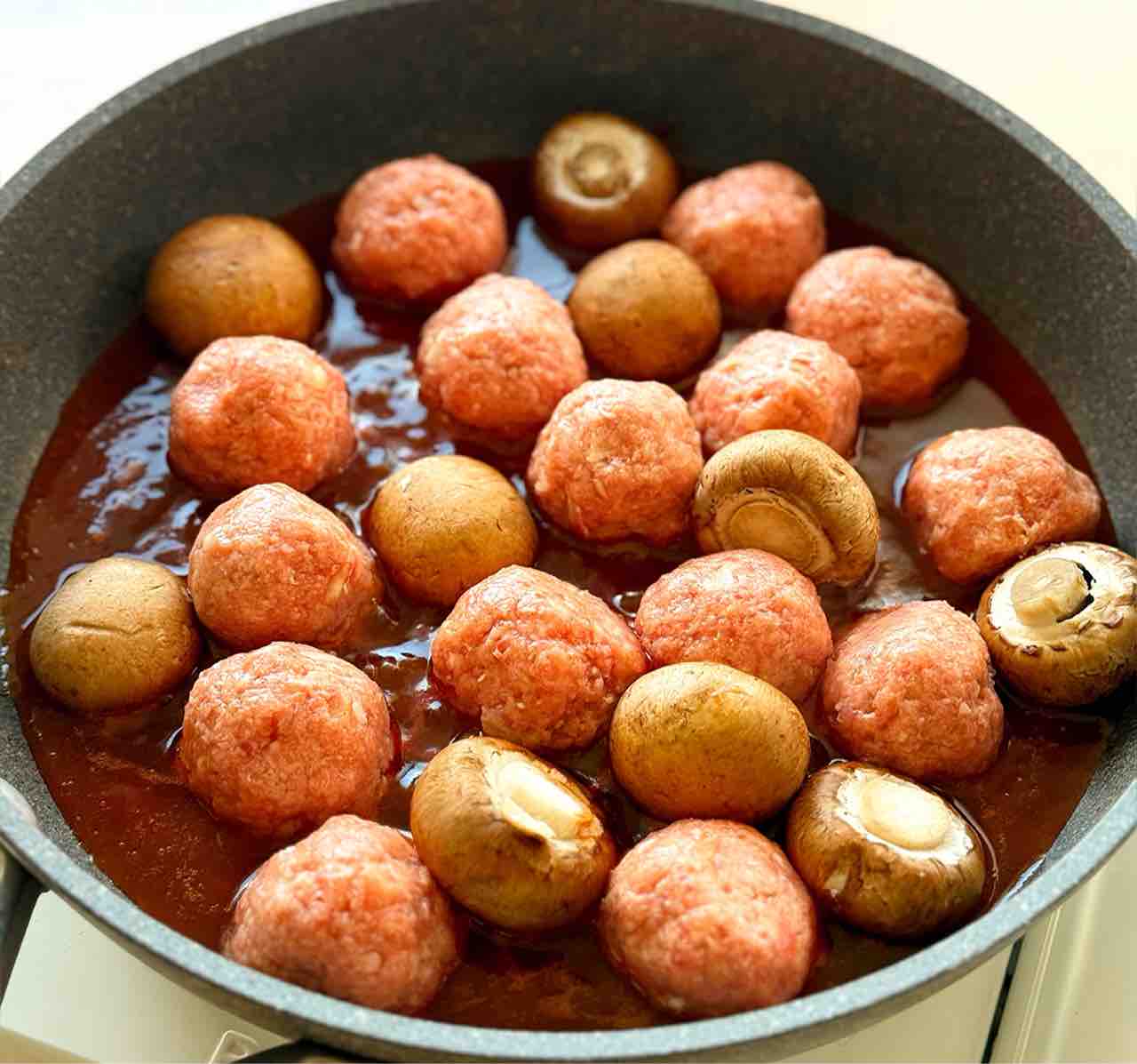 ♦︎ミートボールは表面が固まってから返し、必要以上にいじらないようにして下さい♩2〜3回返せば十分です!