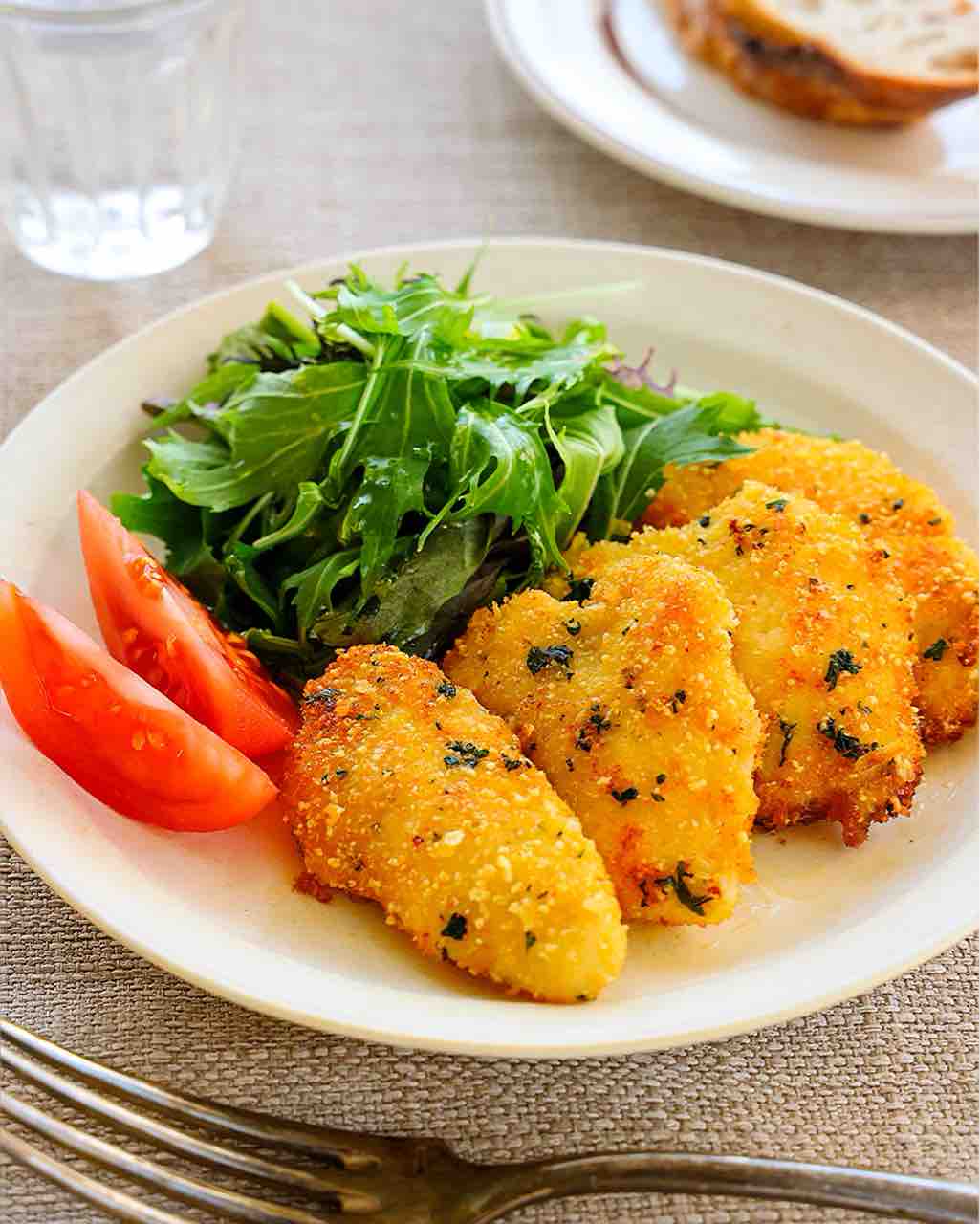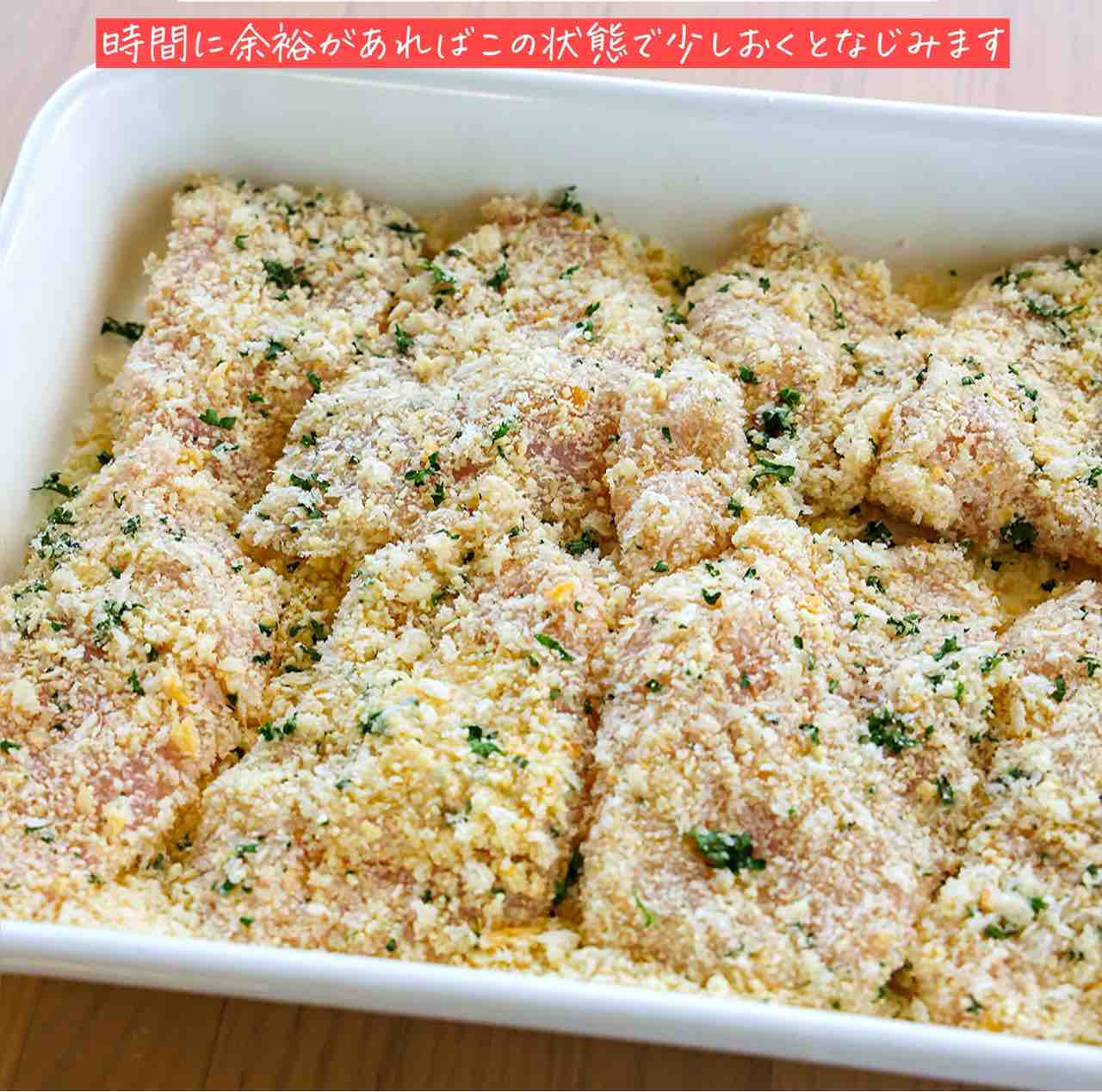 ♦︎衣は押さえるようにしてしっかりまぶし付けてください♩時間に余裕があれば衣を付けてから少しおくとなじみやすくなります!