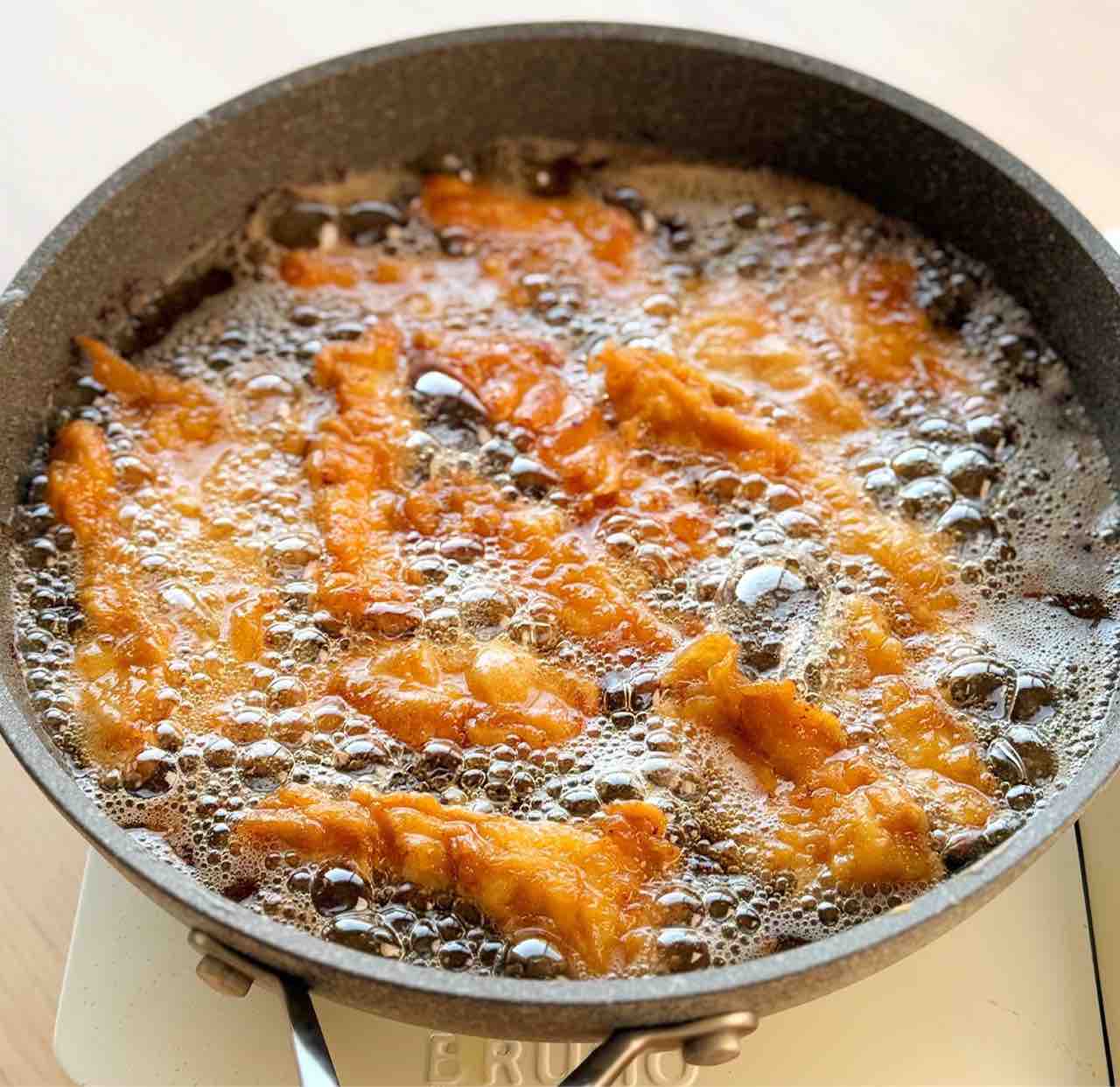 ♦︎私はフライパンに一度に全量入れて揚げ焼きしています♩油の温度は170度を目安に、下がらないよう火加減に注意してください♩