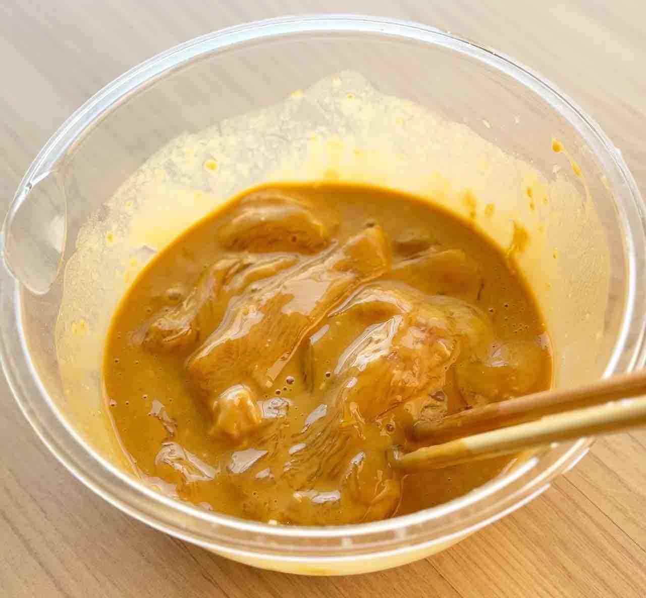 2.ボウルに⚫︎を混ぜて衣を作り、1を加えてからめる。