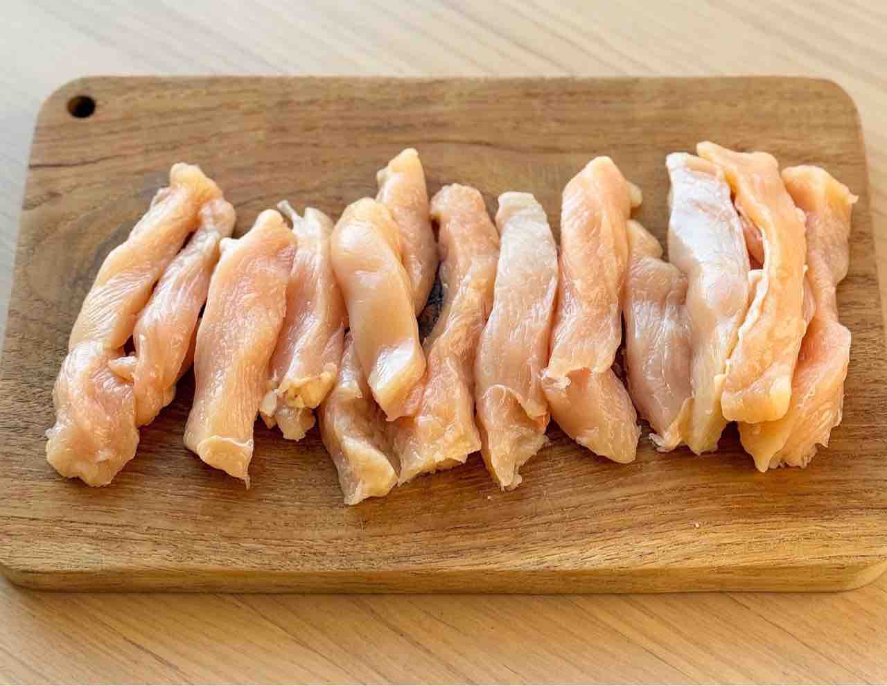 1.鶏肉は2cm角の棒状に切る。